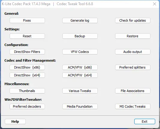 Пакет доступен в нескольких редакциях — Standard, Full, Mega и Minimal, каждая из которых ориентирована на определённый уровень потребностей. Обновления пакета включают последние версии компонентов, такие как MPC-HC 2.0.0.7 и MPC Video Renderer 0.6.4.1994, что улучшает производительность и стабильность воспроизведения. Программа совместима с актуальными версиями Windows и поддерживает как 32-, так и 64-битные системы. Русифицированный интерфейс делает её доступной для пользователей из русскоязычных регионов.