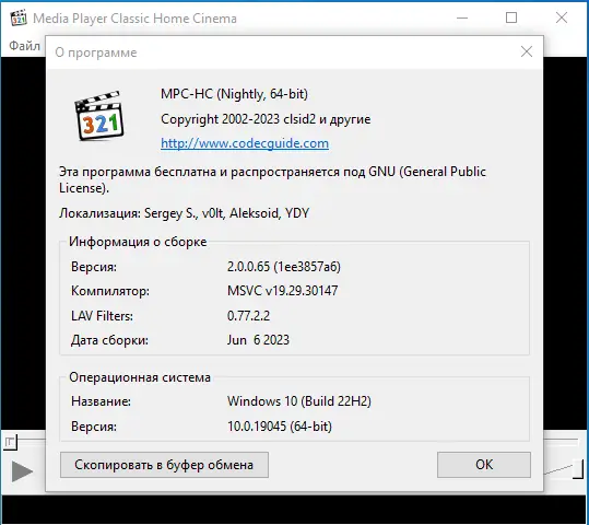 - Наличие обновлённого MPC-HC с улучшенной стабильностью и интерфейсом.
