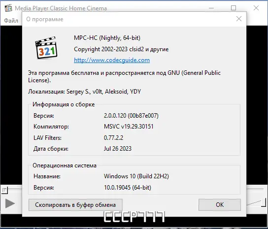 - В состав входит встроенный медиаплеер MPC-HC, оптимизированный для работы с кодеками пакета.