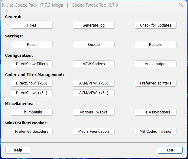 Работа с K-Lite Codec Pack