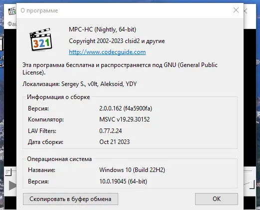 - В состав входит проигрыватель Media Player Classic, адаптированный под современные системы.