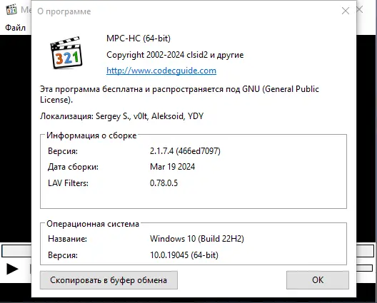 - Интеграция с Windows Media Player, VLC, MPC-HC и другими приложениями для просмотра