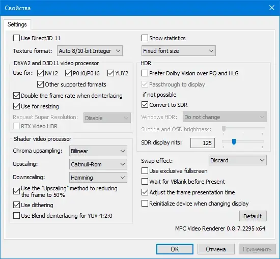 - Включение популярного проигрывателя Media Player Classic Home Cinema