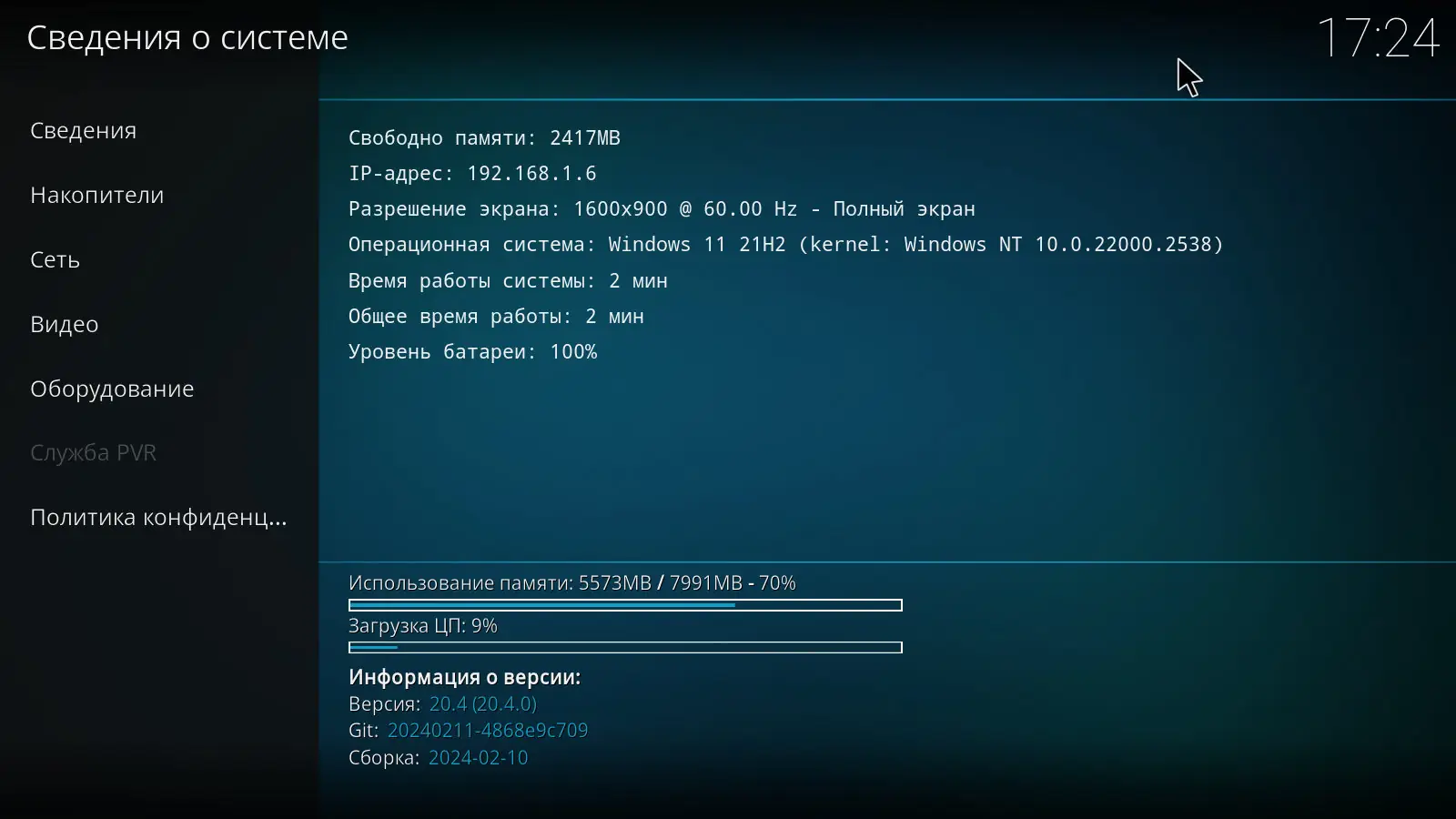 - Реализована интеграция с внешними источниками данных, такими как EPG, погода, почта и игровые платформы.