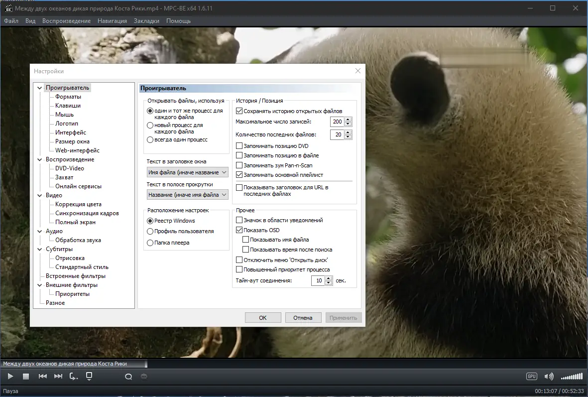 Использование плеера не требует глубоких технических знаний. После запуска достаточно перетащить файл в окно проигрывателя или открыть его через меню. Все основные настройки доступны через контекстное меню или панель инструментов. Можно настраивать горячие клавиши, выбирать аудиодорожки, управлять субтитрами, включать масштабирование и перемещение изображения. Поддержка двух мониторов позволяет выводить видео на второе display-устройство, оставляя интерфейс на основном. Пользователь может копировать MediaInfo в буфер обмена, сохранять декодированные потоки и делать скриншоты с указанием времени в миллисекундах.