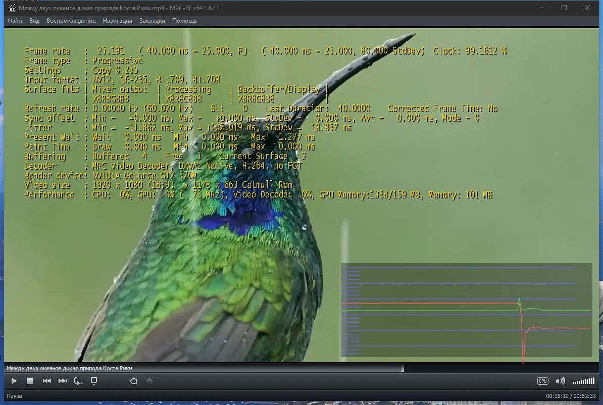- Поддерживается аппаратное ускорение декодирования H.264 на современных видеокартах x64.