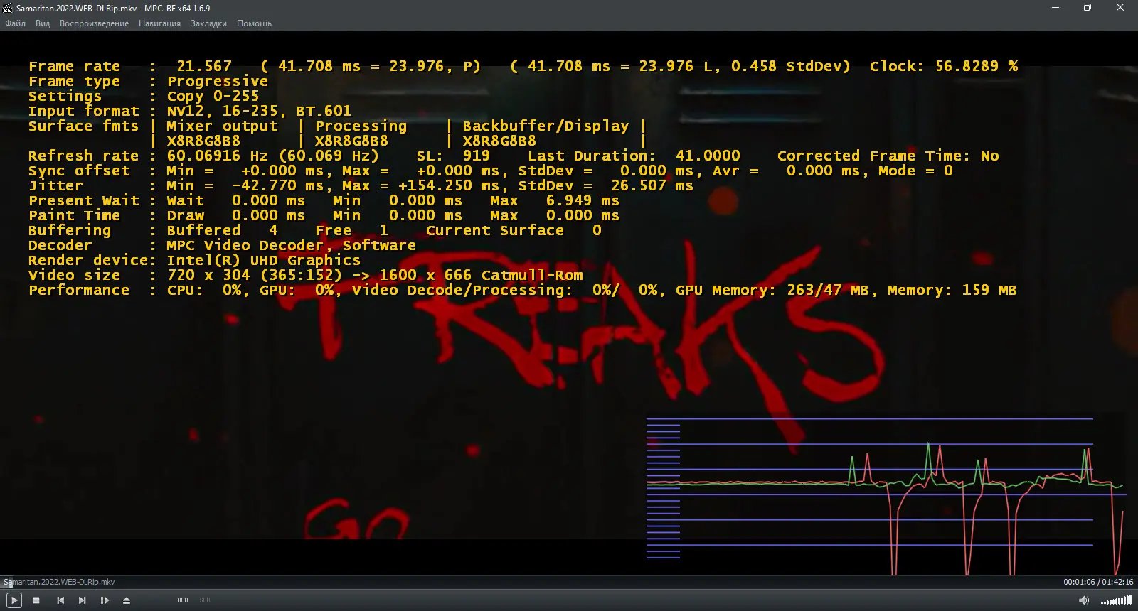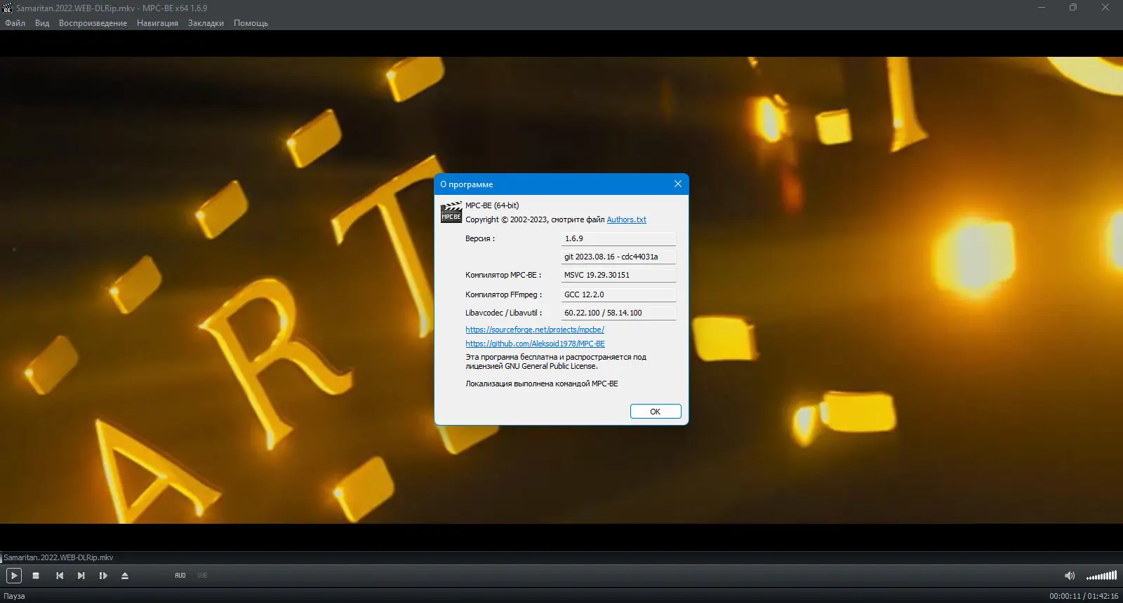 Использование плеера интуитивно понятно: достаточно перетащить файл в окно программы или открыть его через меню «Файл». Управление осуществляется как с помощью мыши, так и через настраиваемые горячие клавиши. В настройках можно изменить видеовыход (например, на MPC Video Renderer), включить аппаратное ускорение, настроить звуковые дорожки и субтитры. Для расширенного контроля доступен полноценный эквалайзер цветности, яркости и контраста.