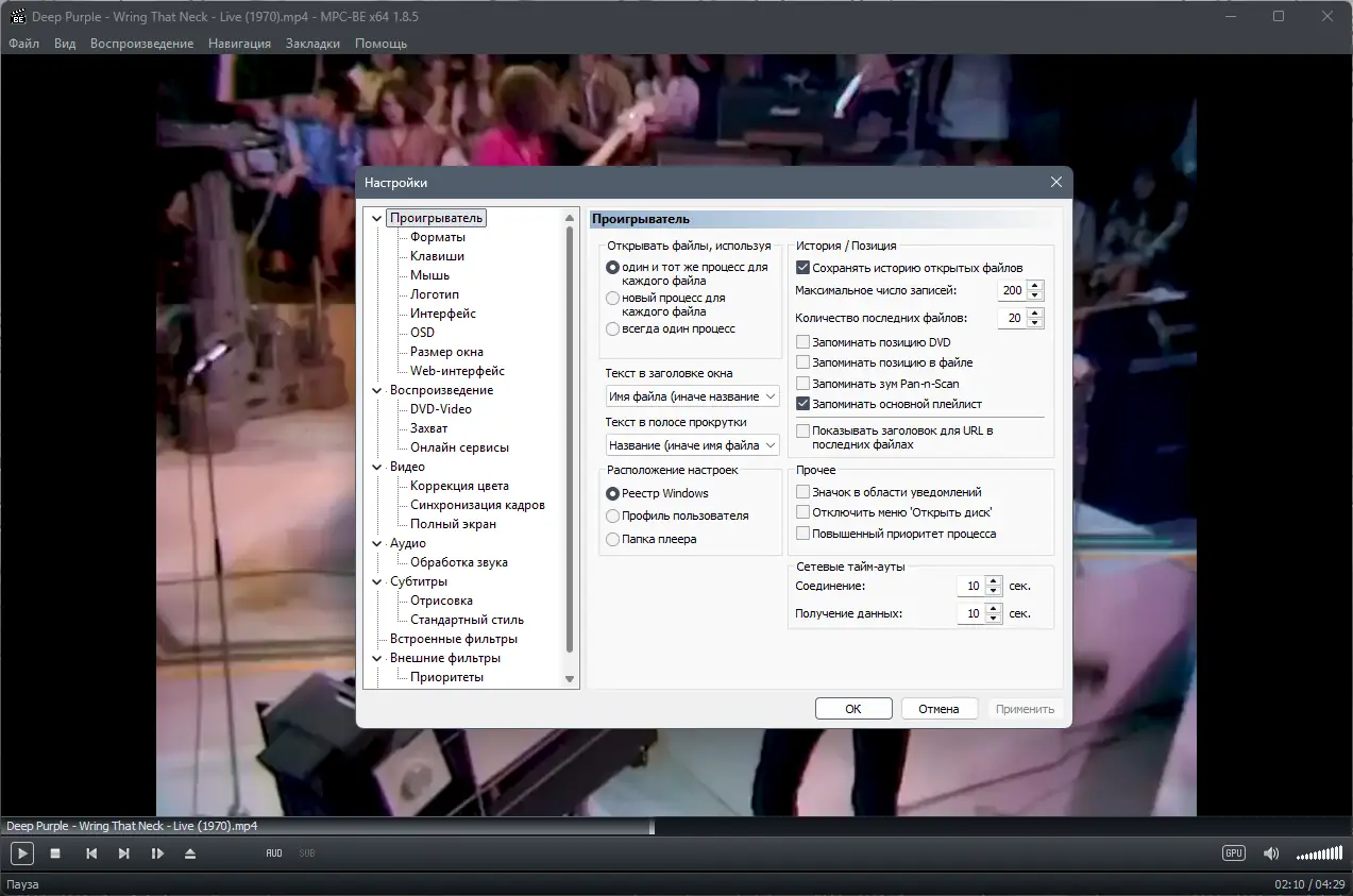 Работа с Media Player Classic
