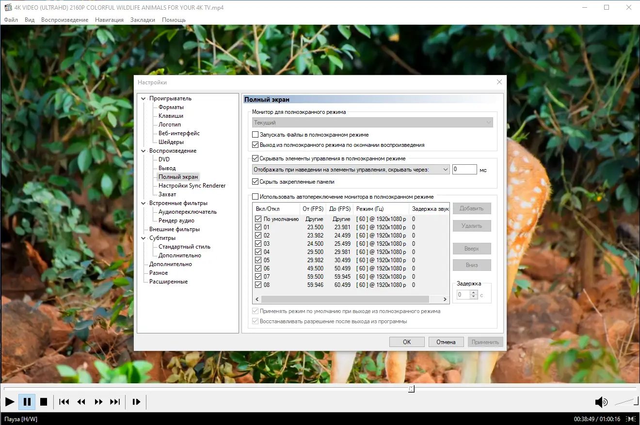 Использование проигрывателя интуитивно понятно благодаря простому и чистому интерфейсу. Для открытия файла достаточно перетащить его в окно программы или выбрать через меню «Файл». Поддержка горячих клавиш позволяет управлять воспроизведением без мыши: перемотка, изменение громкости, переключение дорожек и субтитров выполняются быстро и удобно. В настройках можно активировать автоматическое сохранение позиции воспроизведения, настроить рендерер изображения (MPCVR или madVR), включить поддержку HDR и Dolby Vision. Для просмотра контента с субтитрами доступен встроенный поиск через OpenSubtitles.com, а также ручная загрузка файлов. Панель поиска с предварительным просмотром упрощает навигацию по медиатеке, а возможность закрепления списка воспроизведения слева, справа или отдельно повышает удобство при работе с большими коллекциями.