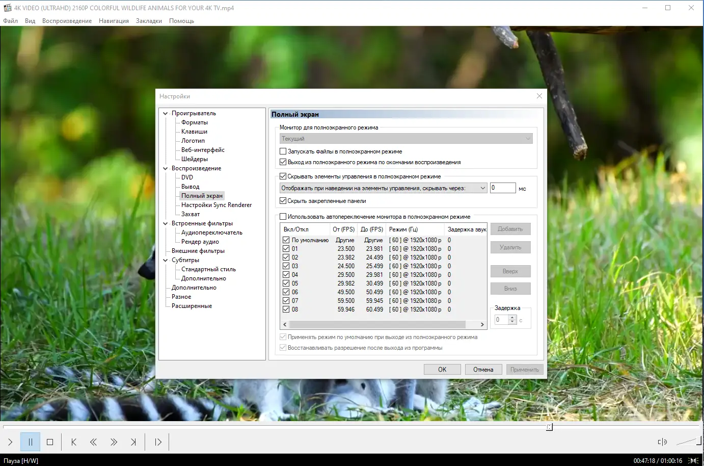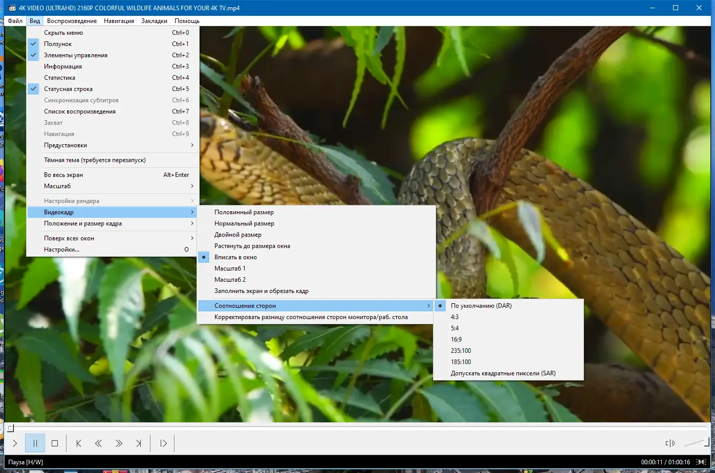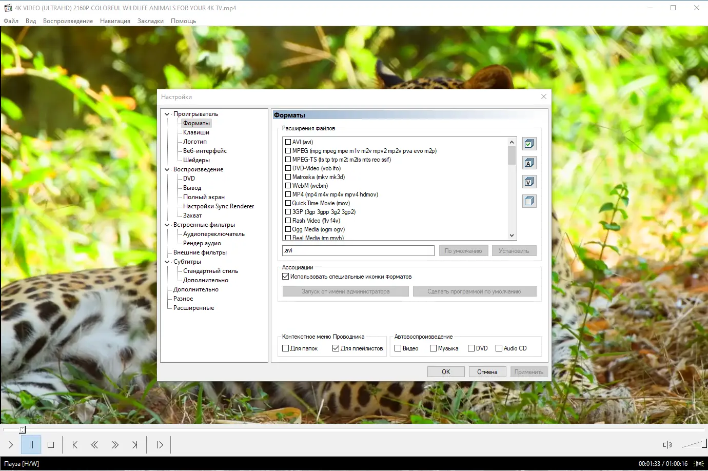 Работа с Media Player Classic Home Cinema