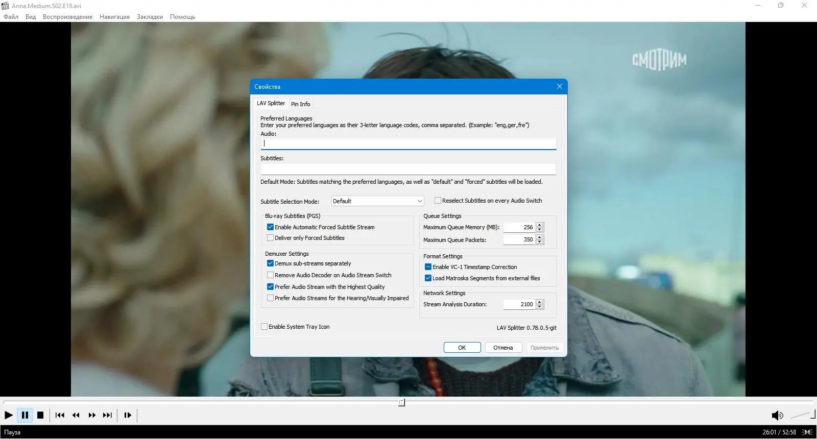 Работа с Media Player Classic