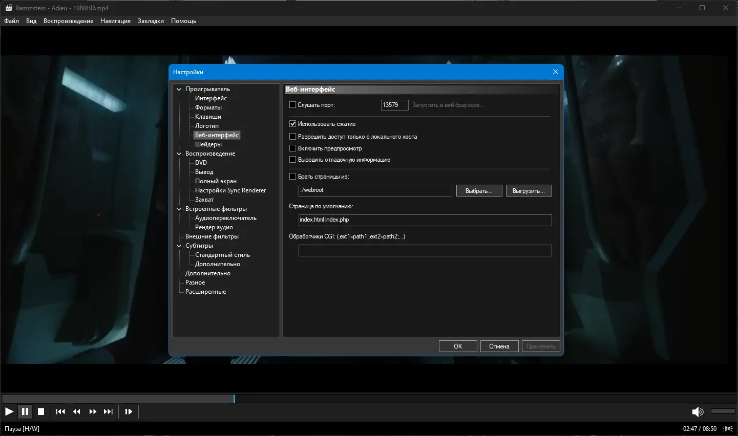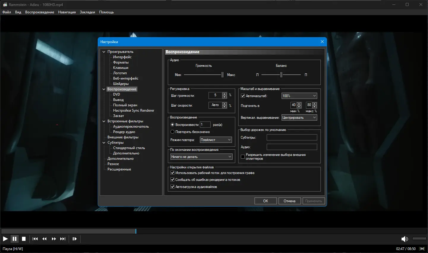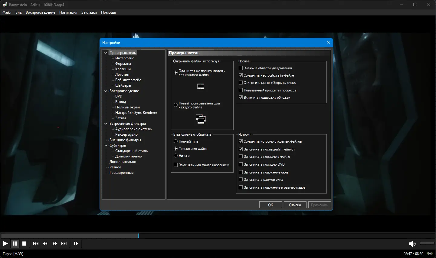 Работа с Media Player Classic Home Cinema
