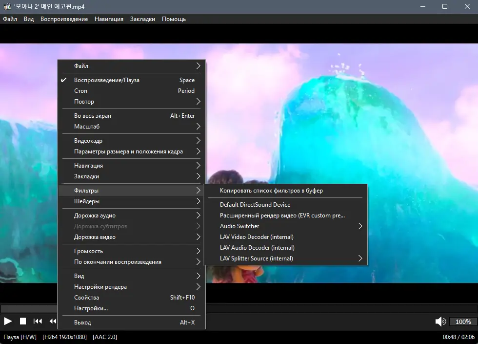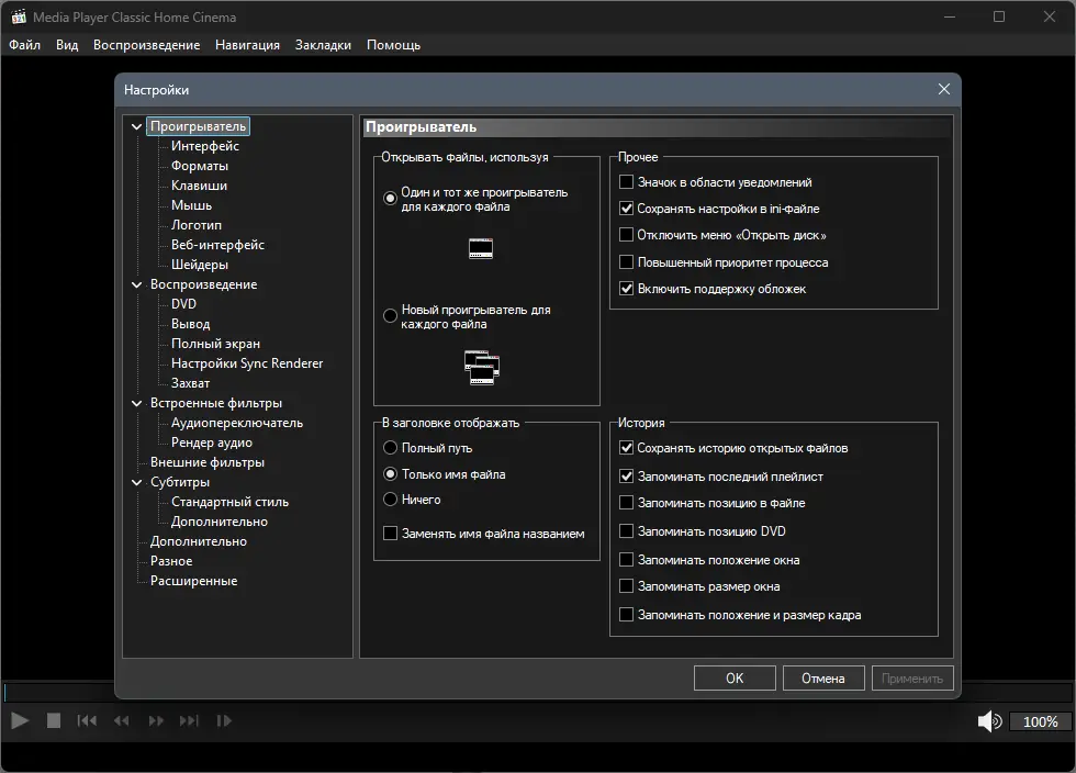 Работа с Media Player Classic Home Cinema