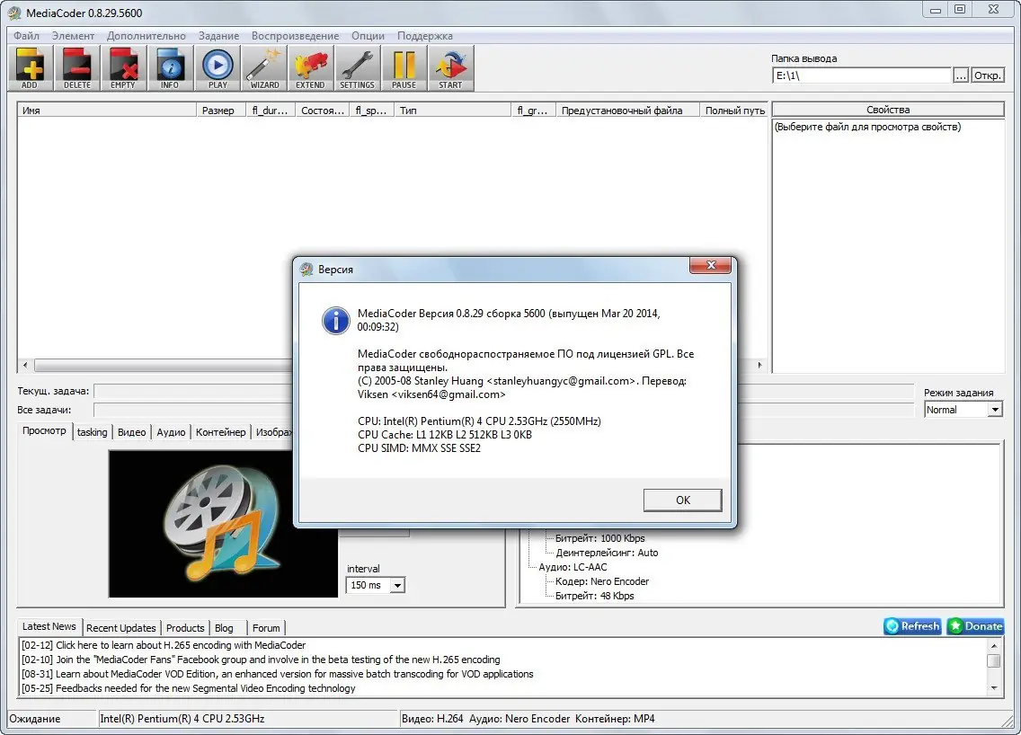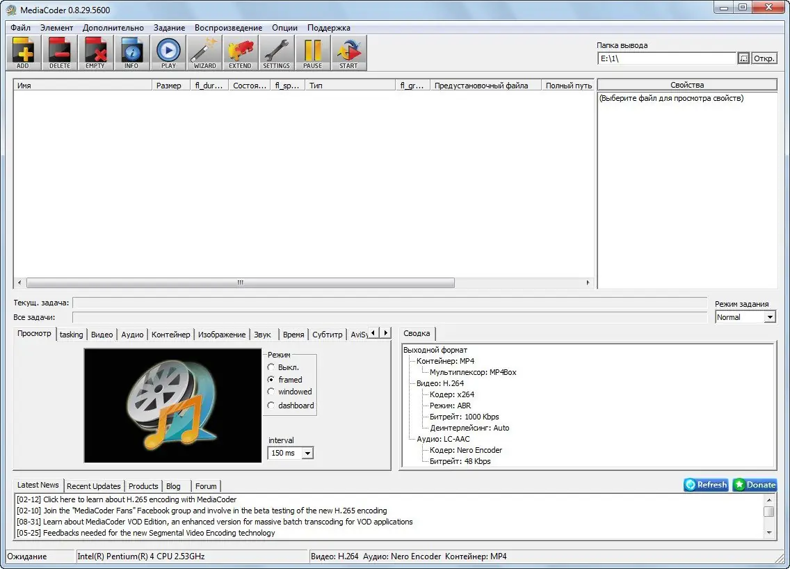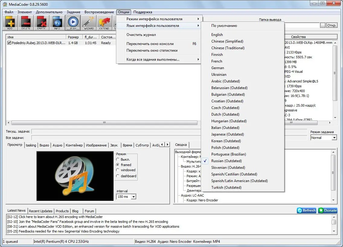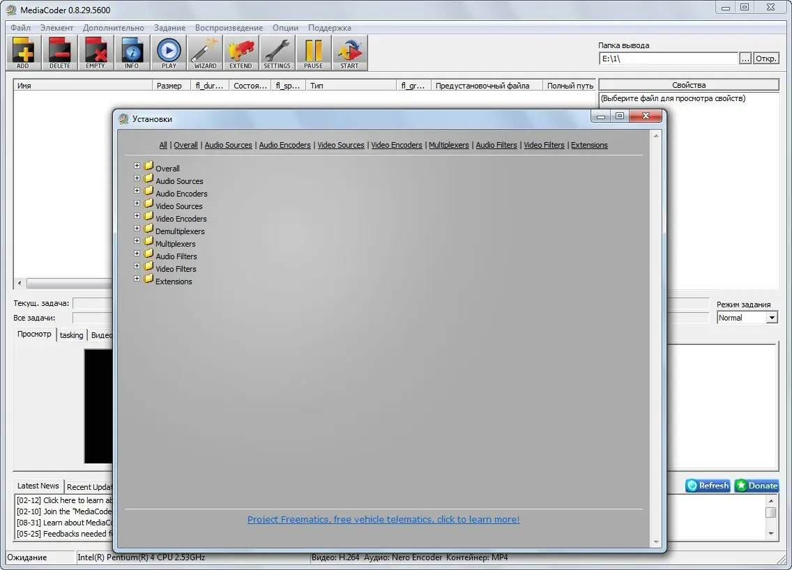 Работа с MediaCoder