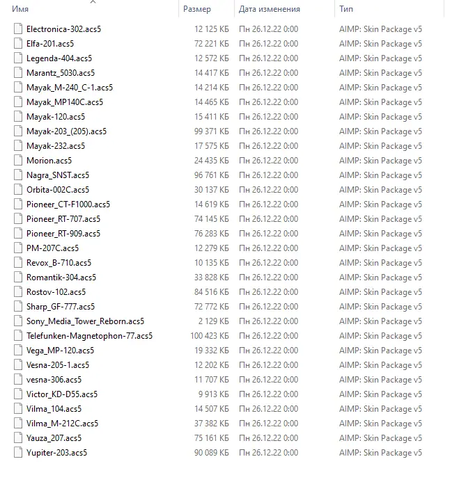 - 63 темы для AIMP5 в формате .acs5 с улучшенной графикой и поддержкой современных интерфейсов.
