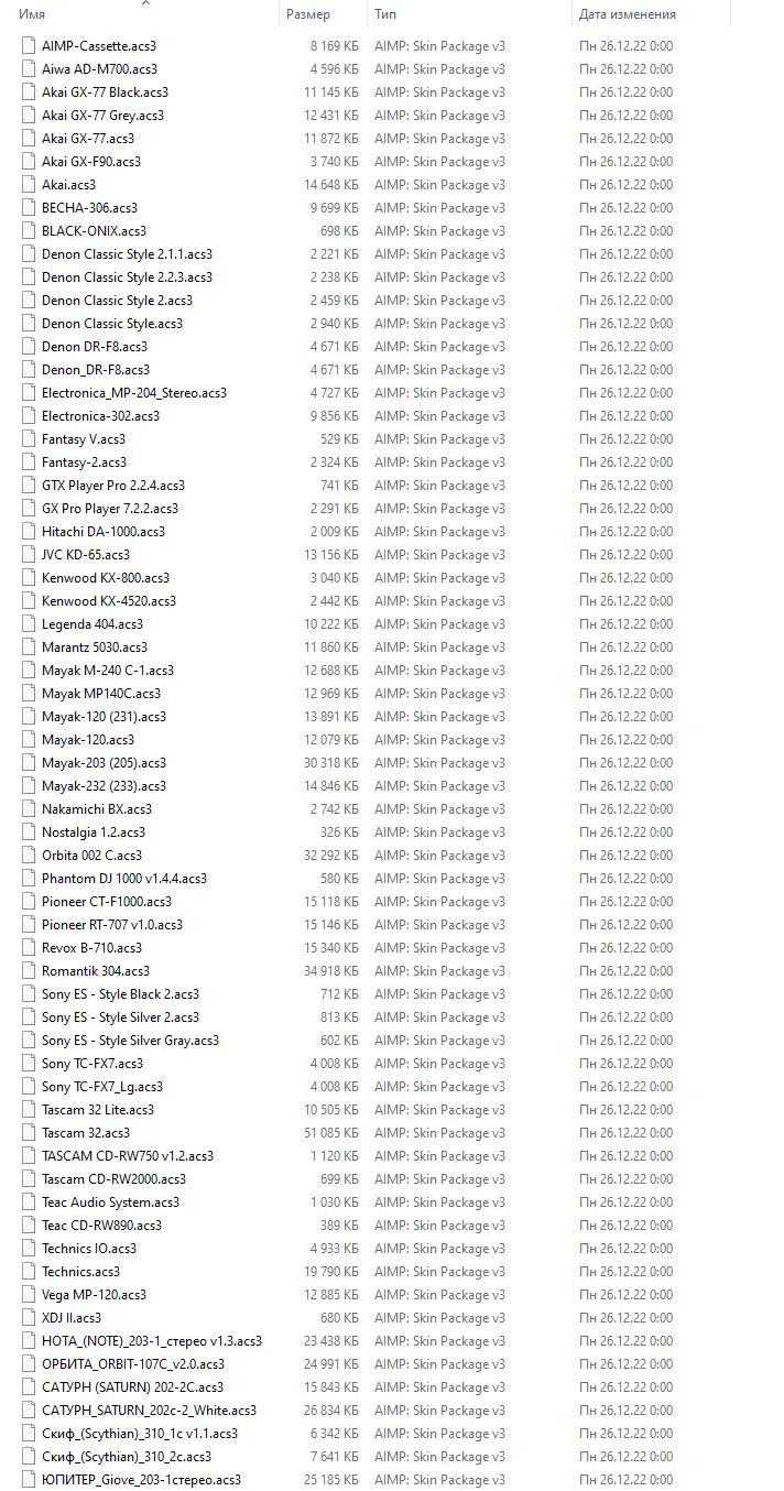 - 30 тем для AIMP3 (.acs3), сохраняющие совместимость с устаревшими системами и конфигурациями.