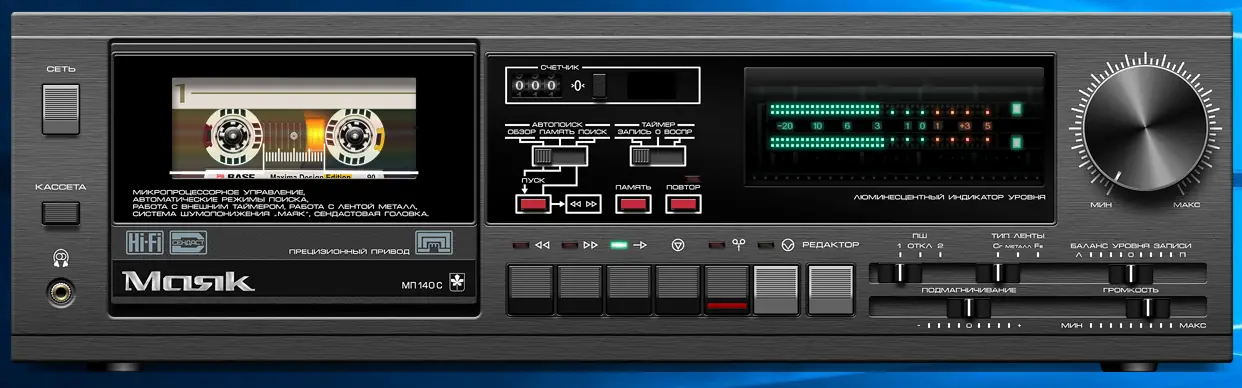 - Высокое качество графики и проработка деталей в стиле винтажных магнитофонов.