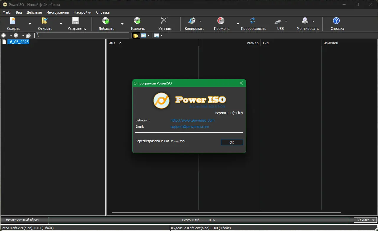 PowerISO — мощное приложение для работы с образами дисков, позволяющее создавать, редактировать, конвертировать и монтировать файлы различных форматов, включая ISO, DAA, BIN и NRG, с поддержкой сжатия и шифрования. Программа поддерживает работу с загрузочными образами, встроенный виртуальный привод и интеграцию в контекстное меню Windows. Подходит для пользователей, которым требуется удобный инструмент для управления образами без необходимости физической записи дисков.
