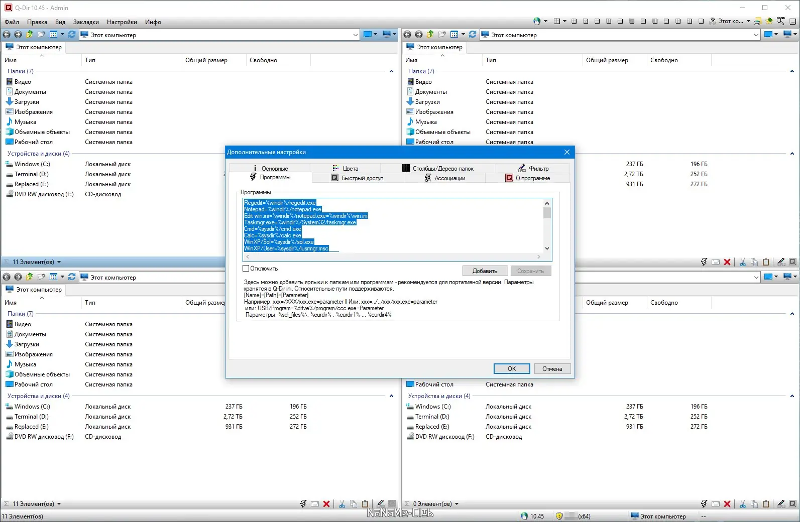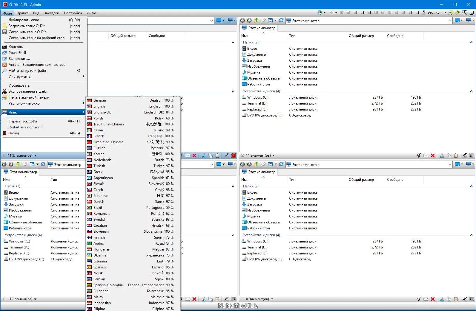 Q-Dir — это компактный и функциональный файловый менеджер с уникальным четырёхпанельным интерфейсом, обеспечивающий быстрый доступ к файлам и папкам на локальных, съёмных и сетевых дисках. Программа поддерживает работу с архивами, FTP-соединениями, имеет встроенные инструменты для фильтрации, предварительного просмотра и цветового выделения файлов, а также работает без установки с любого носителя.