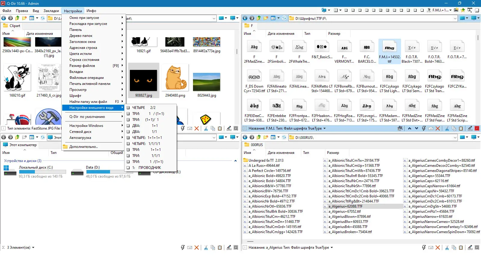 Программа сочетает высокую производительность и гибкость при управлении файловой системой. Интерфейс построен на модульной основе, где пользователь может настраивать количество панелей — от одной до четырёх, переключаясь между различными режимами отображения. Это упрощает копирование, перемещение и сравнение содержимого папок, особенно при работе с внешними дисками или FTP-серверами. Поддержка drag&drop и буфера обмена делает операции интуитивно понятными и быстрыми.