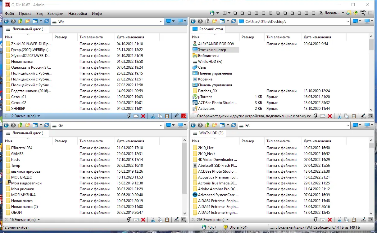 Q-Dir — это компактный и функциональный файловый менеджер с уникальным четырёхпанельным интерфейсом, обеспечивающий удобную навигацию по папкам и быстрый доступ к файлам. Программа поддерживает работу с архивами, сетевыми дисками, USB-накопителями и обладает расширенными возможностями фильтрации, предварительного просмотра и экспорта данных.