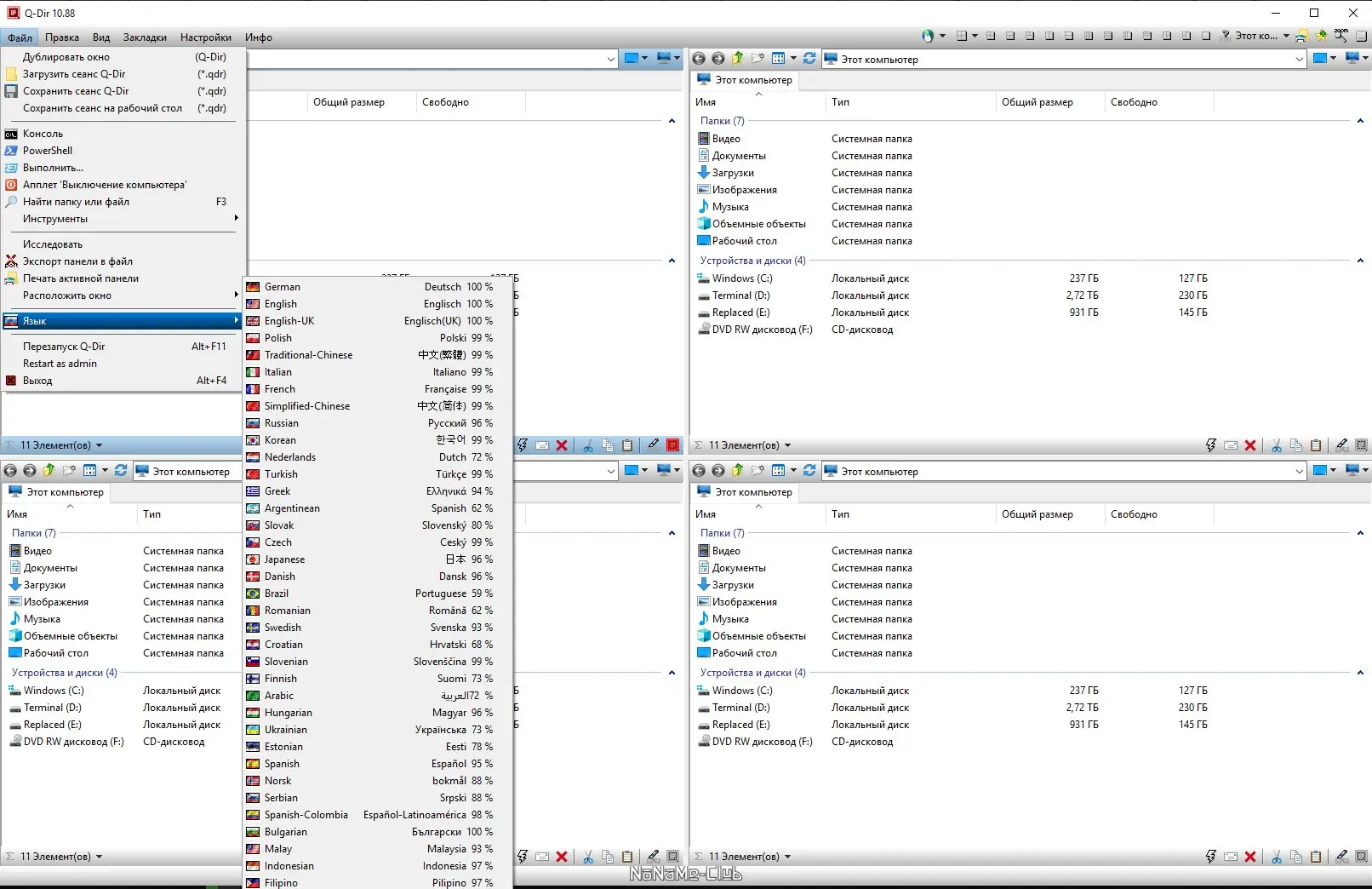 Файловый менеджер Q-Dir с четырёхпанельным интерфейсом обеспечивает эффективную работу с файлами и папками, поддерживает портативный режим, архивы, сетевые подключения и быстрый доступ к часто используемым директориям.