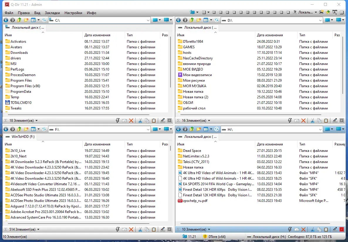 Q-Dir демонстрирует высокую производительность и гибкость в повседневной работе с файловой системой. Он особенно полезен для пользователей, которым приходится одновременно работать с несколькими папками, например, при сортировке документов, переносе данных между носителями или управлении проектами. Программа не требует установки, может запускаться с флешки и сохранять настройки локально. Это делает её идеальным инструментом для системных администраторов и мобильных пользователей.
