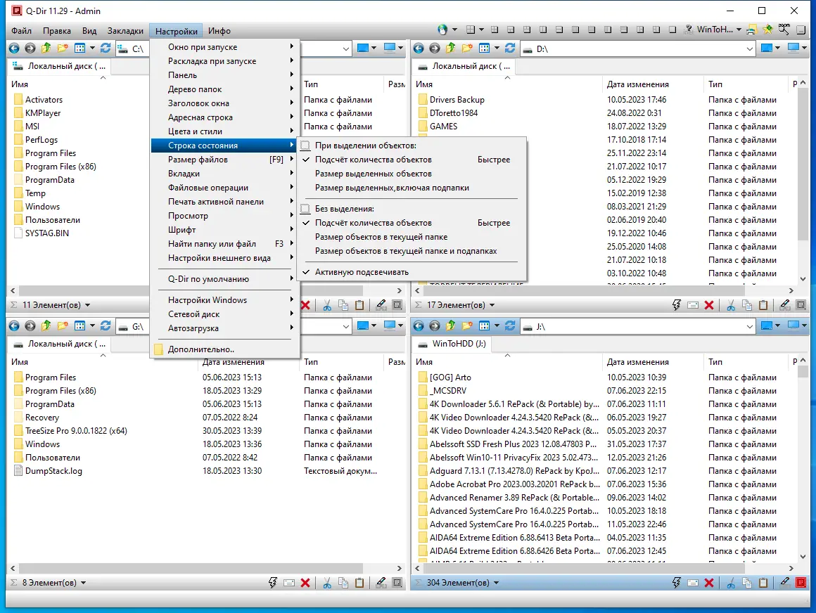 Q-Dir — это файловый менеджер с четырёхпанельным интерфейсом, позволяющий эффективно управлять файлами и папками на локальных, сетевых и съёмных носителях. Программа поддерживает работу с архивами, FTP-соединениями, имеет функцию быстрого доступа к папкам и встроенный режим предварительного просмотра.