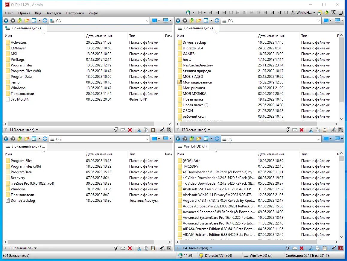 Q-Dir представляет собой многофункциональный файловый менеджер, разработанный для повышения производительности при работе с файловой системой. Его ключевой особенностью является уникальный интерфейс с четырьмя одновременно открытыми панелями, что упрощает копирование, перемещение и сравнение содержимого каталогов. Программа совместима с различными типами хранилищ, включая жёсткие диски, сетевые папки, USB-устройства и облачные хранилища через FTP. Поддержка различных расширений и возможность настройки отображения делают инструмент универсальным для пользователей с разными задачами. Интерфейс адаптирован под несколько языков, включая русский, что расширяет доступность приложения.