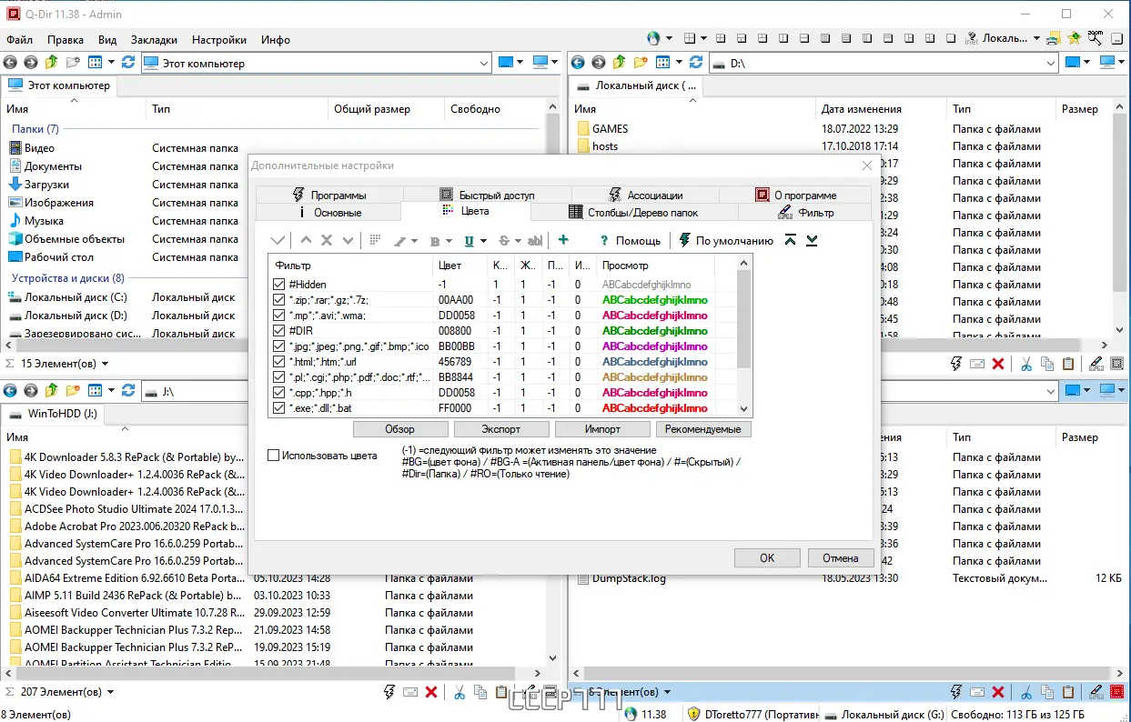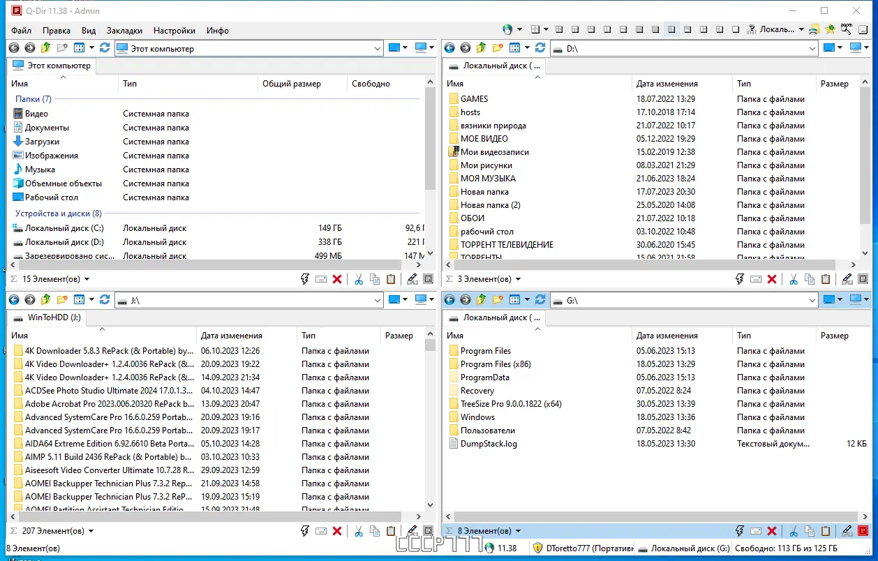 Q-Dir — это многофункциональный файловый менеджер с уникальным четырёхпанельным интерфейсом, обеспечивающий удобную навигацию по дискам, сетевым папкам и архивам. Программа поддерживает работу с ZIP-архивами, FTP-соединениями, сетевыми ресурсами и USB-накопителями, не требует установки и работает в портативном режиме. Благодаря гибкой настройке отображения, цветовой индикации типов файлов и функции быстрых ссылок, Q-Dir ускоряет доступ к нужным данным и повышает эффективность управления файлами.