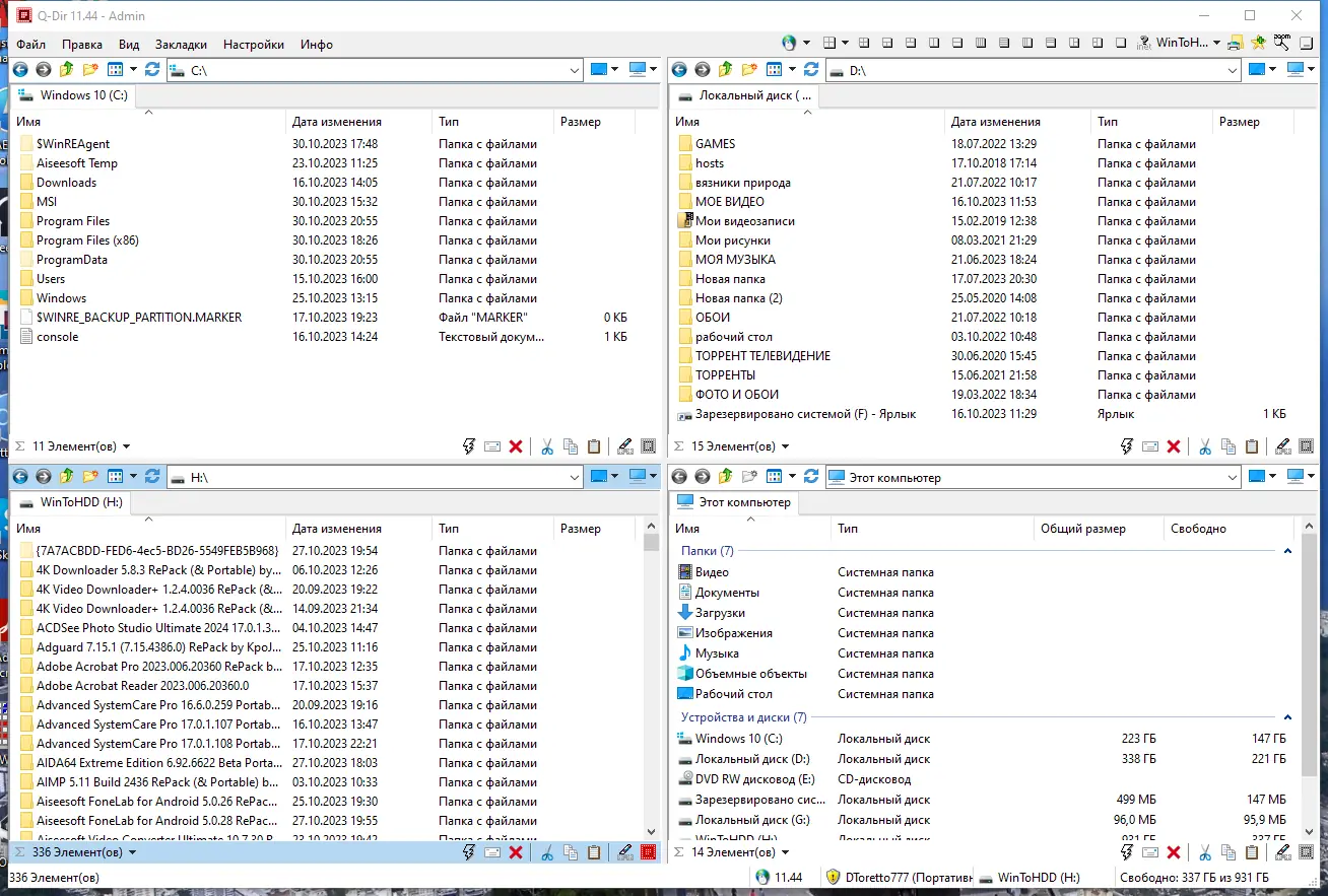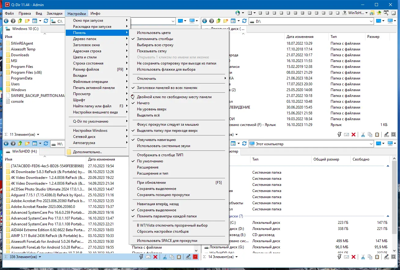 Q-Dir — это эффективный файловый менеджер с уникальным четырёхпанельным интерфейсом, обеспечивающий удобную навигацию по дискам, сетевым папкам и съёмным носителям. Программа поддерживает работу с архивами, FTP-соединениями и предлагает расширенные функции для быстрого доступа к файлам. Подходит для пользователей, ценящих скорость, гибкость и визуальную организацию данных.