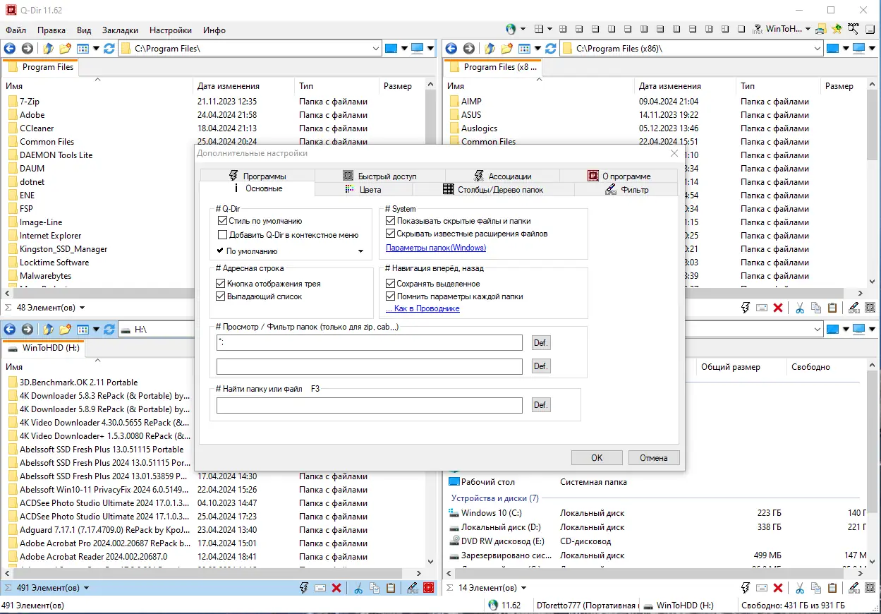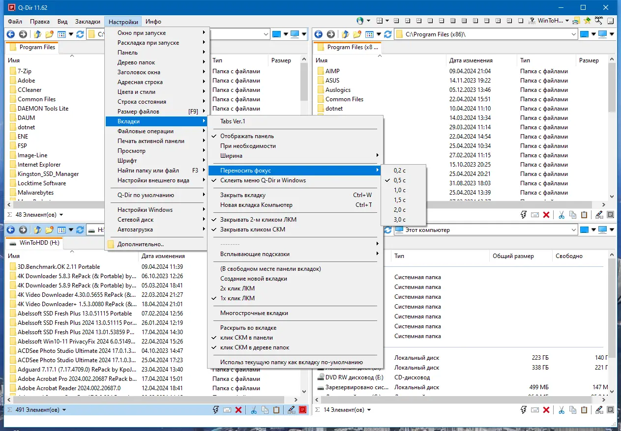 Q-Dir сочетает минимализм интерфейса с широким функционалом, что делает его незаменимым инструментом при работе с большим количеством файлов.