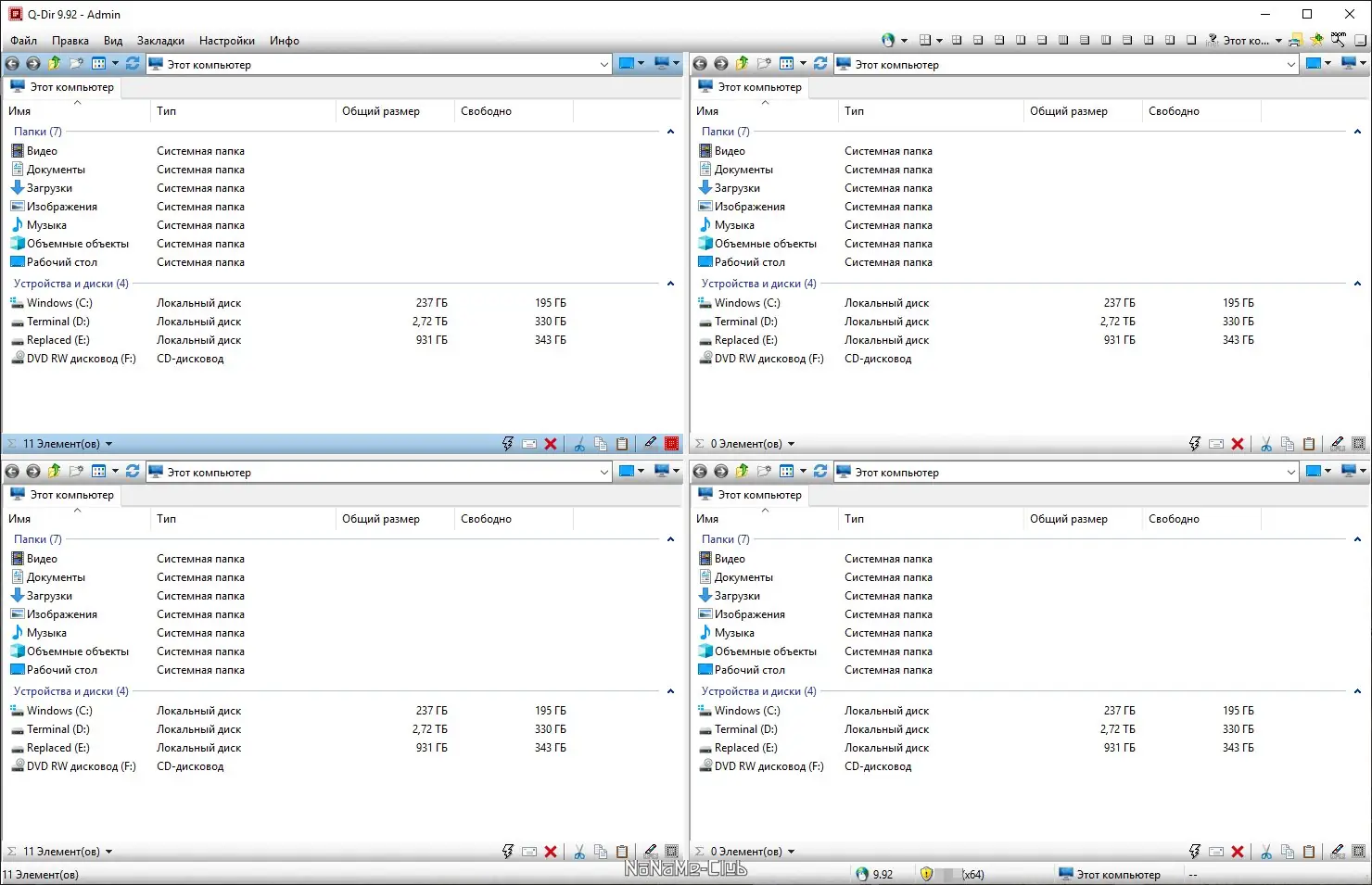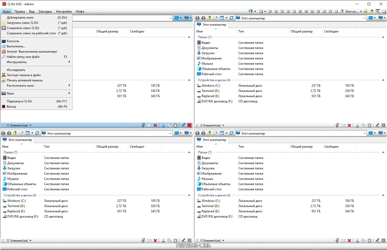 Q-Dir — это компактный и функциональный файловый менеджер, разработанный для пользователей, которым важна скорость и удобство при управлении данными. Его ключевой особенностью является уникальный четырехпанельный интерфейс, позволяющий одновременно просматривать несколько каталогов и быстро перемещать или копировать файлы между ними. Программа не требует глубоких технических знаний и подходит как для новичков, так и для продвинутых пользователей.