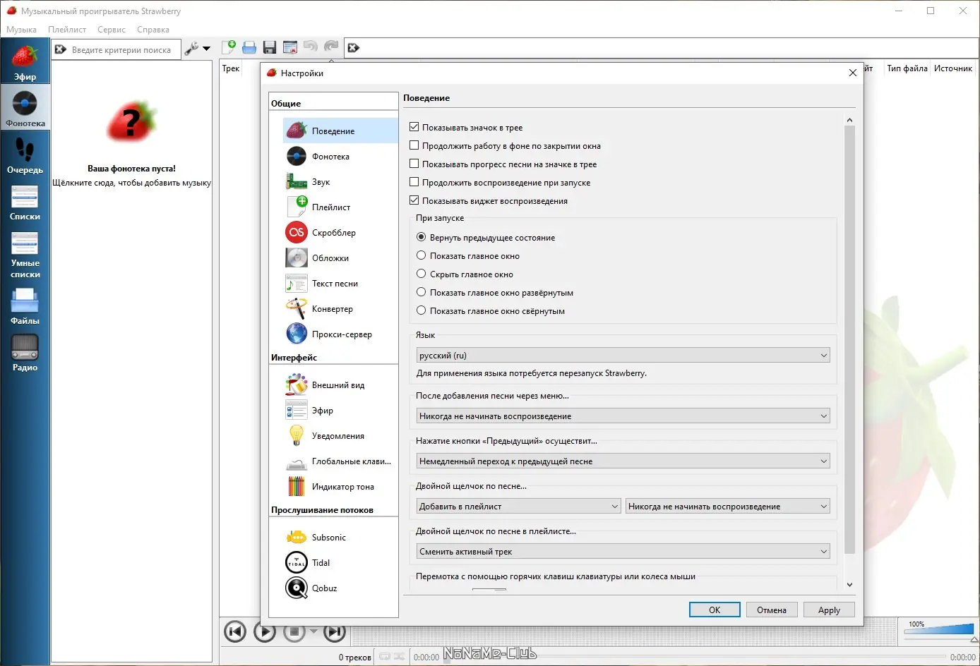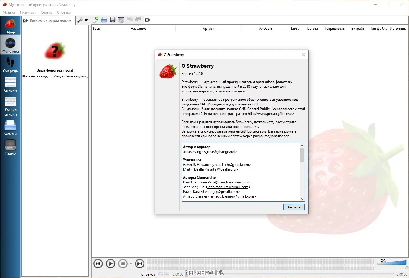 Strawberry — это продвинутый музыкальный проигрыватель и менеджер аудиоколлекций, созданный для ценителей качественного звука и организованной медиатеки. Программа основана на кодовой базе Clementine и предлагает расширенные функции для воспроизведения, сортировки и редактирования музыки. Поддержка множества форматов, интеграция с онлайн-сервисами и гибкие настройки делают её идеальным выбором для аудиофилов и коллекционеров.