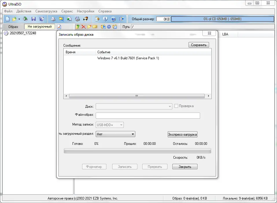 Программа поддерживает создание загрузочного образа с возможностью его последующей записи на флешку или диск.