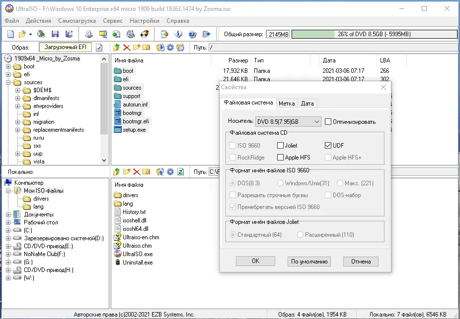 UltraISO сочетает в себе широкий функционал и простоту использования, что делает её одной из самых популярных программ в категории работы с образами. Она поддерживает современные стандарты, включая создание UDF-образов с файлами объёмом более 200 ГБ, что особенно актуально при работе с большими данными. Программа совместима с x64 системами и полностью адаптирована под интерфейс Windows 10 и выше. Однако, несмотря на все преимущества, существуют и ограничения, связанные с лицензионной моделью и глубиной интеграции в некоторые системы.