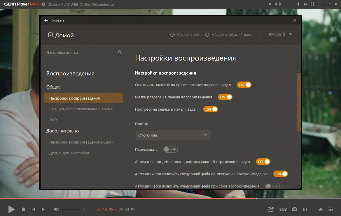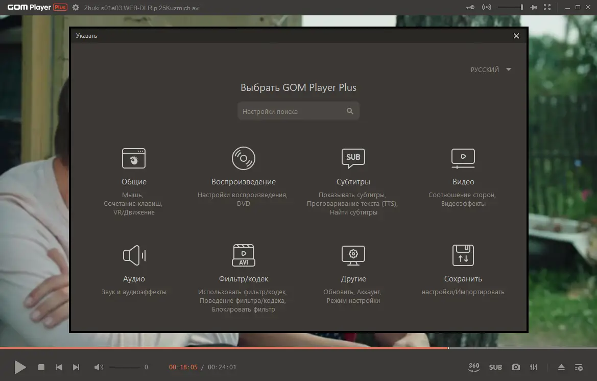 Работа с GOM Player Plus
