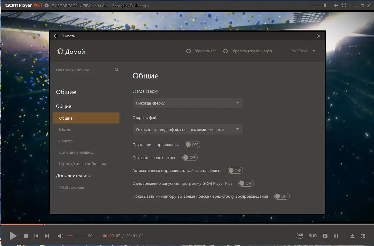 - Широкие возможности настройки изображения, звука и интерфейса, включая работу с эффектами и субтитрами.