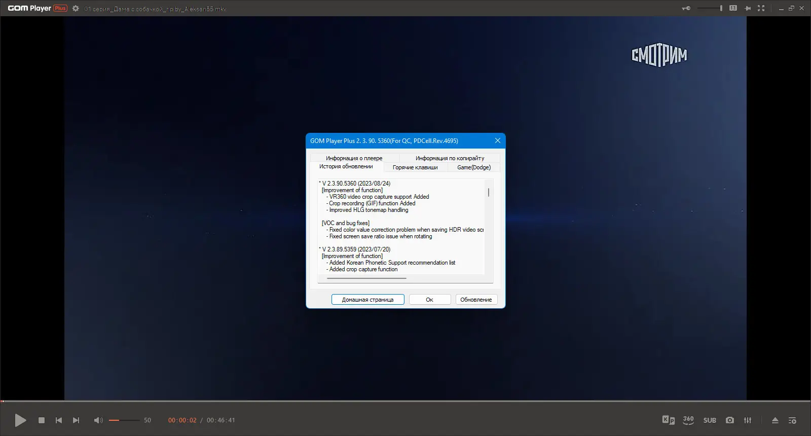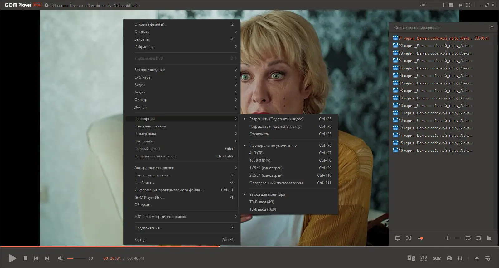 Работа с GOM Player Plus