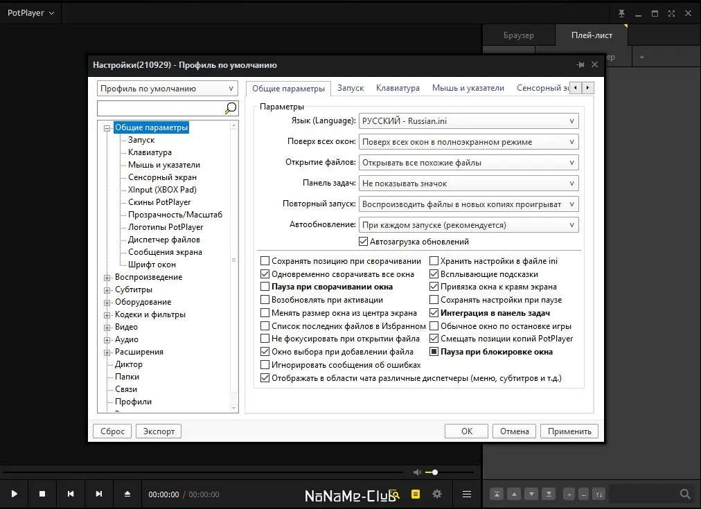 Работа с PotPlayer