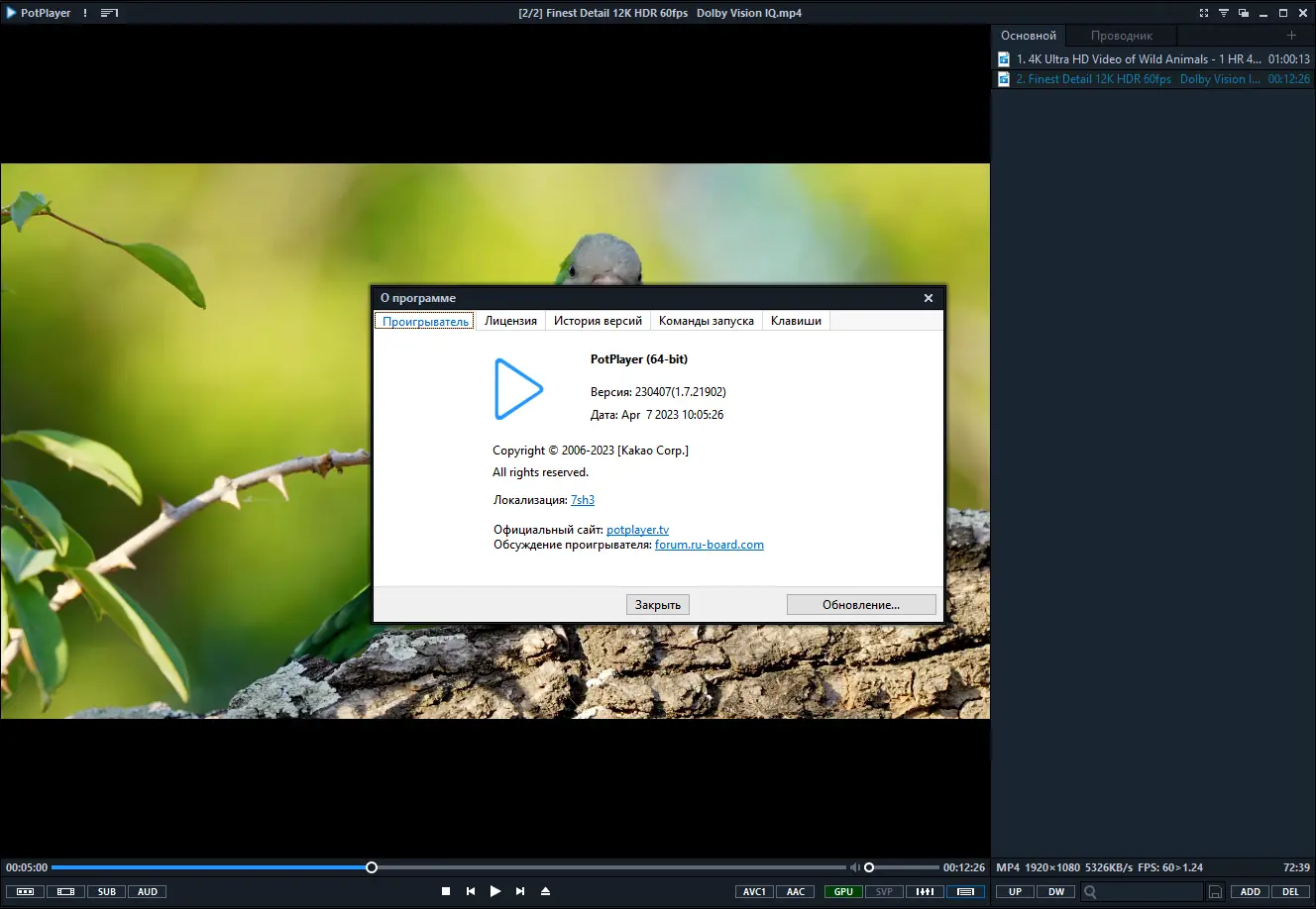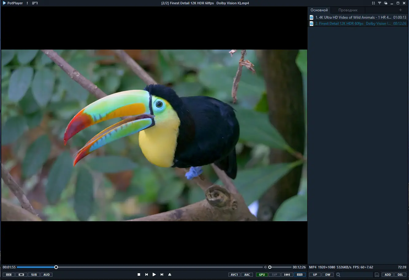 Программа демонстрирует стабильную работу даже с высоконагруженным контентом, включая 4K-видео и многоканальный звук.