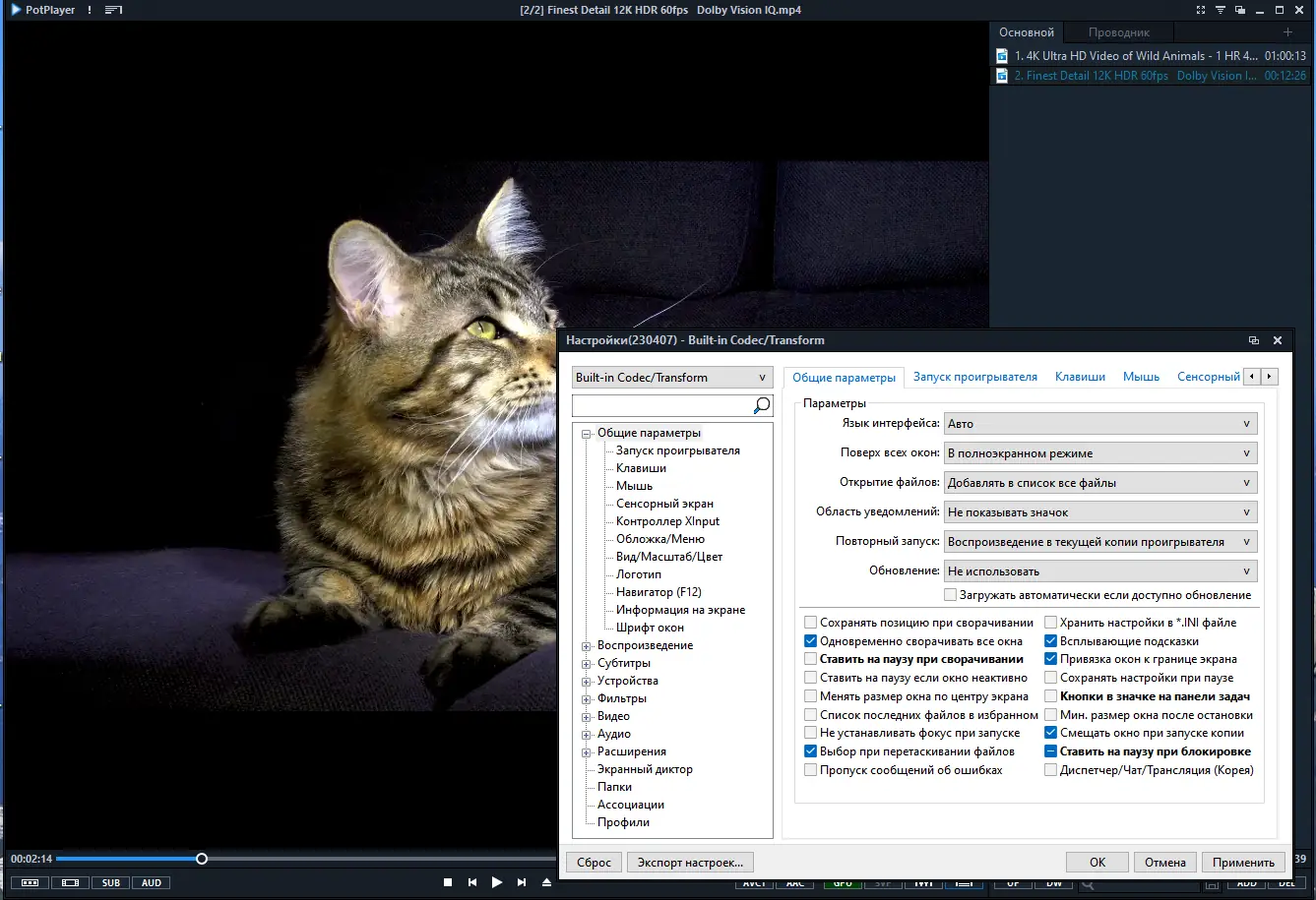 - Гибкая настройка интерфейса, горячих клавиш и поведения плеера.