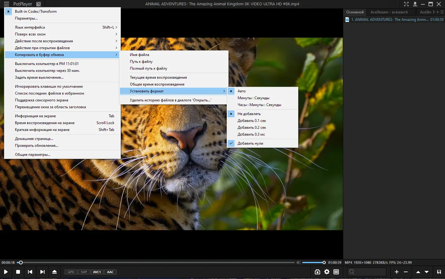 Работа с PotPlayer
