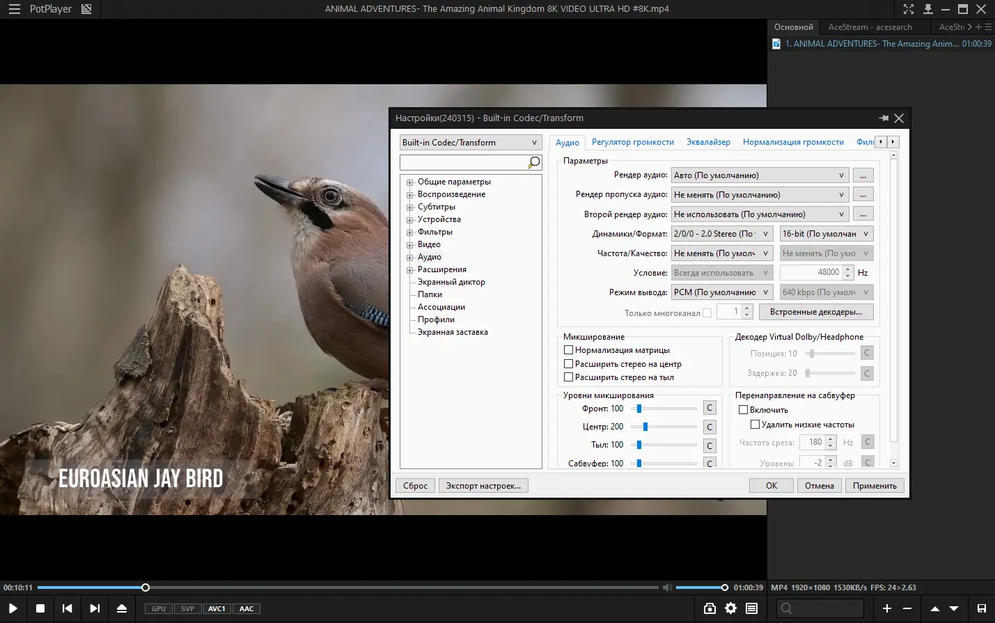 Использование PotPlayer не вызывает сложностей даже у новичков. После запуска достаточно перетащить нужный файл в окно проигрывателя или воспользоваться меню «Открыть». Для тонкой настройки доступно множество параметров: можно изменить скорость воспроизведения, масштаб изображения, включить улучшение цвета или плавность движения. Горячие клавиши настраиваются вручную, что особенно удобно при частом использовании. Поддерживаются прокси-соединения, что позволяет смотреть видео в ограниченных сетях. Также плеер может записывать звук с выхода, что полезно при создании подкастов или сохранении потокового контента. Для опытных пользователей доступна работа с AviSynth-фильтрами и шейдерами.