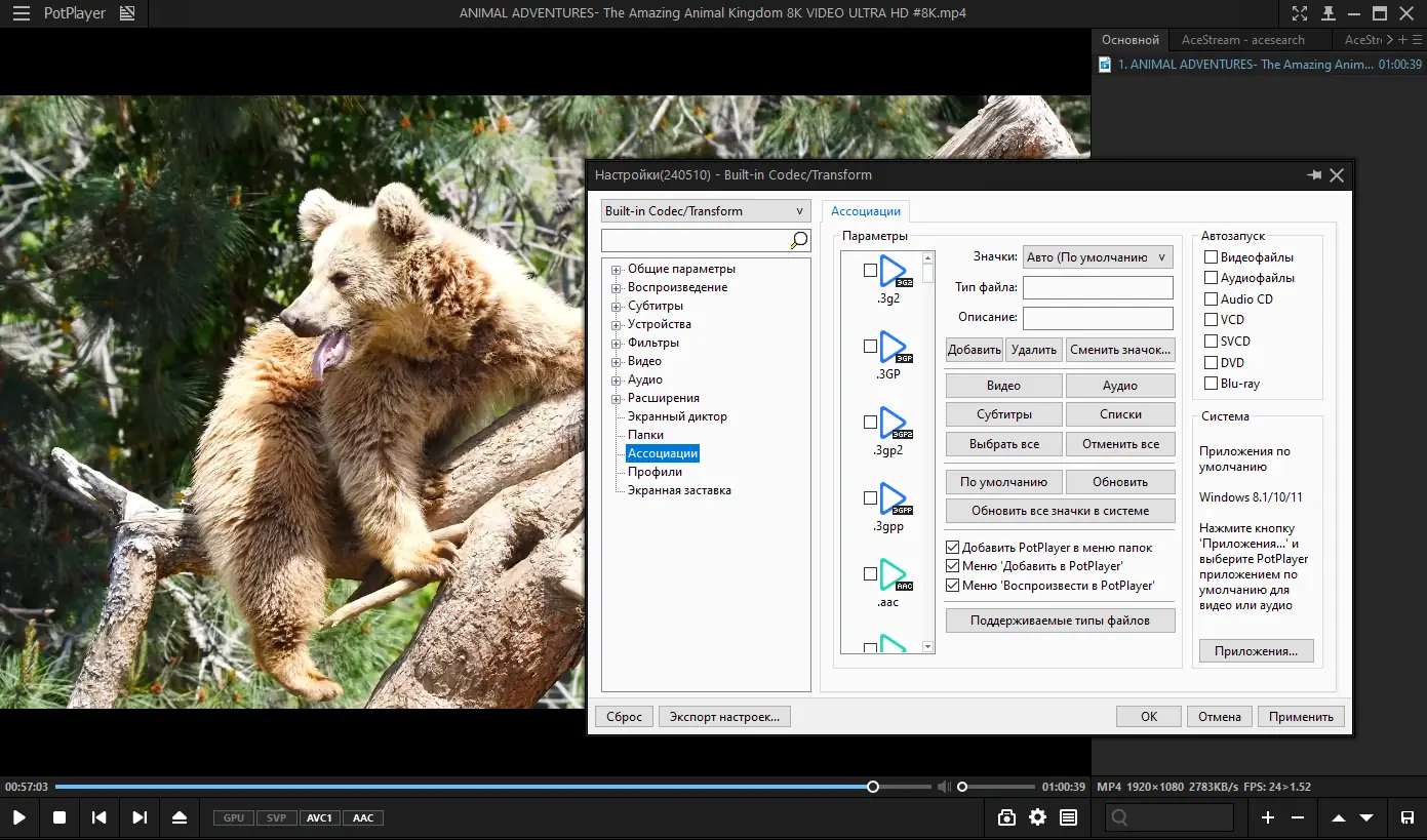 Работа с PotPlayer
