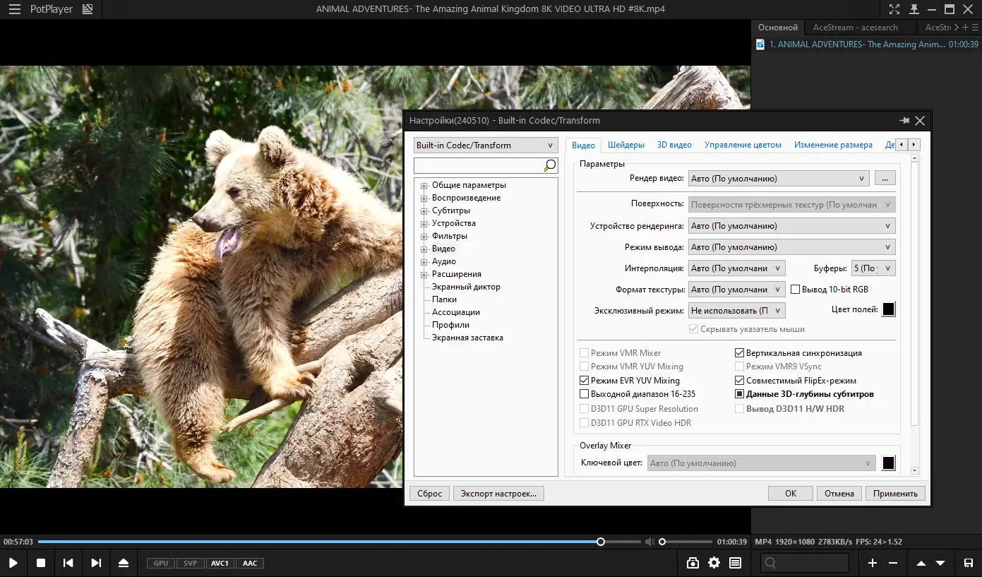 Использование PotPlayer не требует глубоких технических знаний, но при этом открывает доступ к продвинутым возможностям для опытных пользователей. После запуска достаточно перетащить файл в окно плеера или открыть его через меню. Программа автоматически определит формат и начнёт воспроизведение. Для управления доступны горячие клавиши, настраиваемые вручную, а также контекстное меню с множеством параметров. Можно изменять скорость проигрывания, масштаб изображения, включать субтитры, применять шейдеры и визуализацию. Для просмотра HDR-видео рекомендуется использовать 64-битную версию с поддержкой DXVA и соответствующими настройками рендерера.