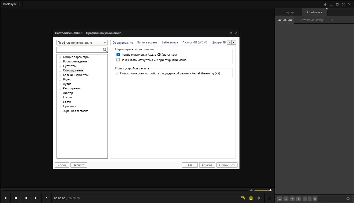 Работа с PotPlayer