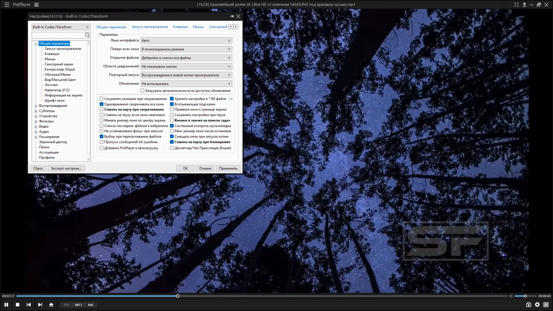 Использование PotPlayer не требует специальных знаний и интуитивно понятно даже новичкам. После запуска достаточно перетащить нужный медиафайл в окно проигрывателя или воспользоваться контекстным меню для открытия через программу. Все основные функции доступны через правый клик по видео, где можно настроить масштаб, аудиодорожки, субтитры, эффекты и рендеринг. Для продвинутых пользователей доступен расширенный режим настроек, где можно указать приоритет использования аппаратного декодирования, изменить рендерер видео, подключить сторонние плагины или шейдеры. Также поддерживаются команды через командную строку, что удобно для автоматизации задач.
