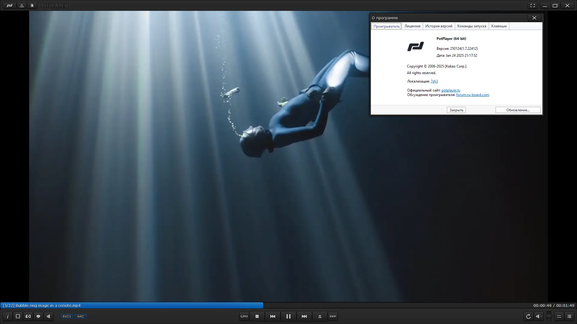 PotPlayer — мощный и гибкий мультимедийный плеер, разработанный южнокорейской компанией Kakao, известной по созданию KMPlayer. Программа поддерживает широкий спектр аудио- и видеоформатов без необходимости установки дополнительных кодеков, обеспечивая высокое качество изображения и звука. Воспроизведение осуществляется с минимальной нагрузкой на систему, благодаря оптимизации под современные процессоры и видеокарты. Плеер поддерживает аппаратное ускорение через DXVA, CUDA и QuickSync, что позволяет комфортно смотреть видео в 4K и HDR. Интерфейс легко настраивается, а обилие функций делает PotPlayer одним из самых популярных решений для просмотра медиаконтента на Windows. Версия, доступная для установки, основана на бета-сборке, предназначенной для тестирования, и может содержать экспериментальные функции.
