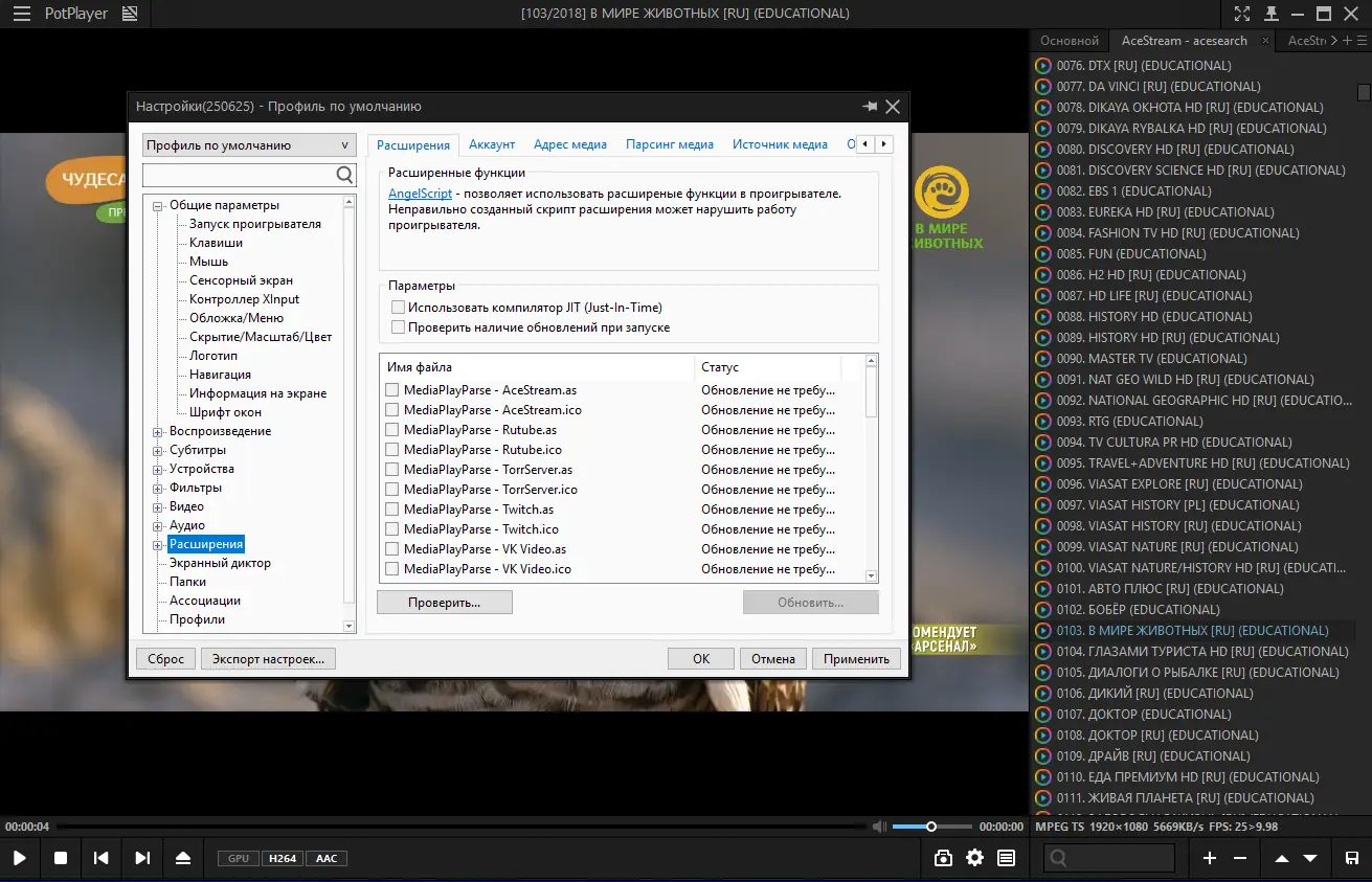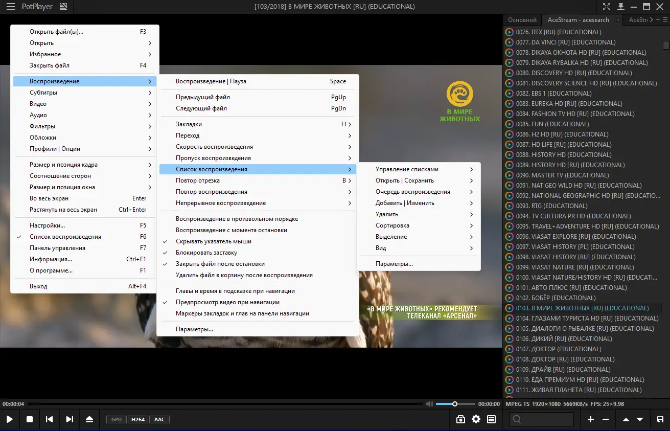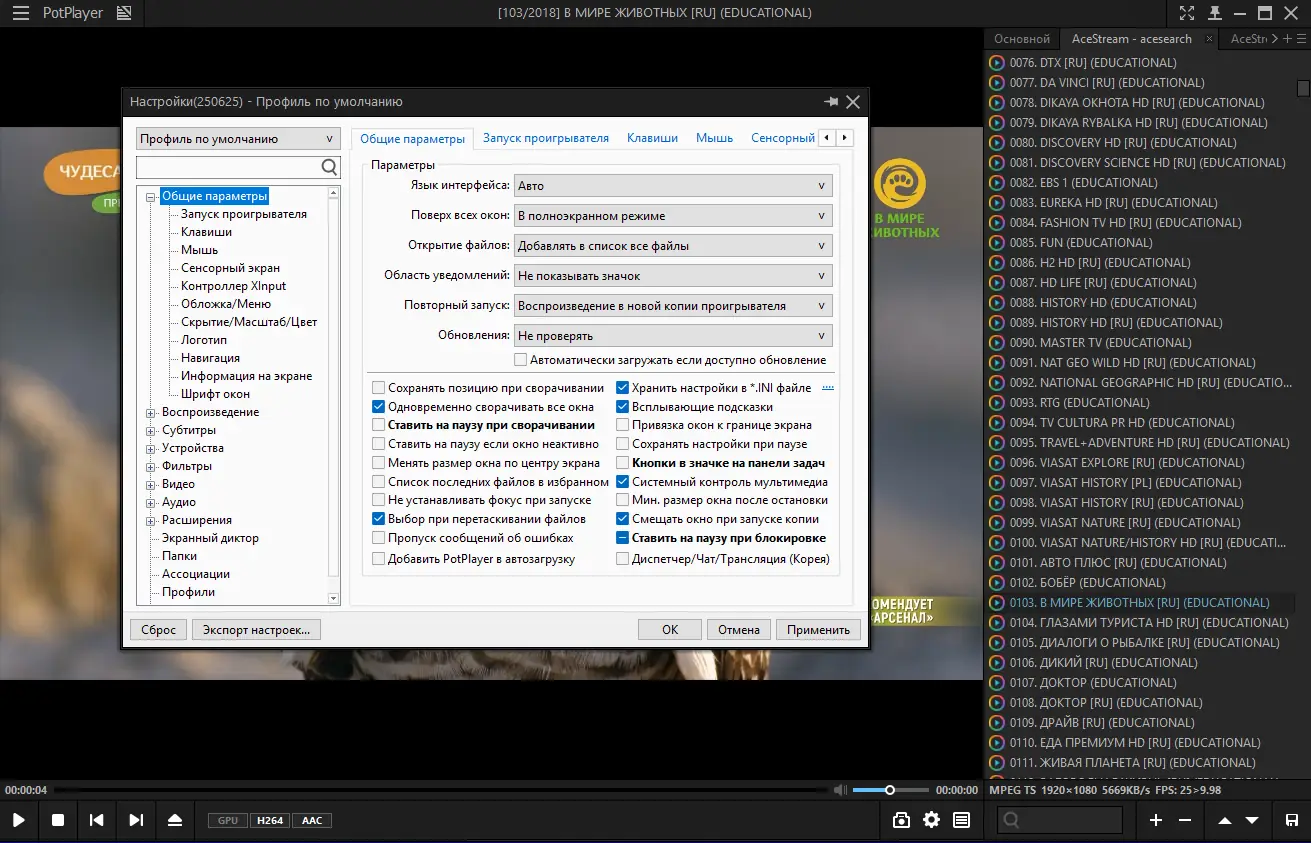 Управление PotPlayer интуитивно понятно и настраивается под предпочтения пользователя. Основные действия, такие как воспроизведение, пауза, перемотка, регулировка громкости, выполняются как с помощью мыши, так и через клавиатуру. Скорость воспроизведения можно изменять в диапазоне от 0.25x до 4x, что полезно при изучении контента. Масштабирование изображения осуществляется комбинациями клавиш Num и Ctrl+Num, позволяя точно настроить положение и размер видео. Для продвинутых пользователей доступны настройки цветокоррекции, аудиофильтров, рендереров и шейдеров.